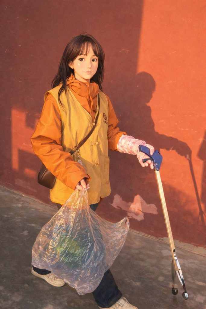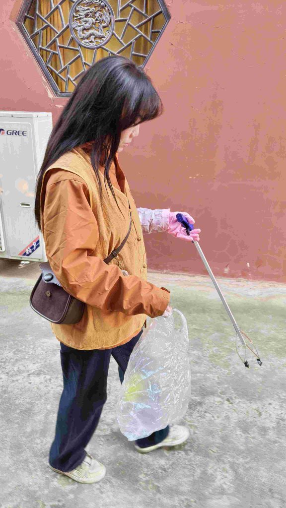我们把花坛草丛里面的垃圾都捡了